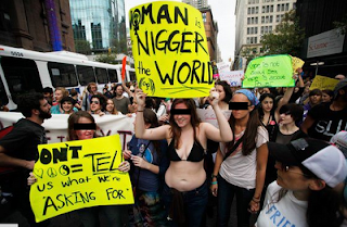 Here we have another feminist going over the top and this time the 'SlutWalk" enabler got trampled under foot for being a racist. I would have thought that her efforts would have introduced a few more charges but it is what it is..Feminists once again demonstrate their utter and total disregard for fellow human beings as they rage against imaginary version of the male, their obsession failed to recognise limits of offensive and acceptable behaviour..